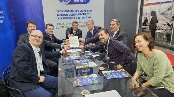 O Governo do Estado entregou nesta terça-feira (1º) o termo de referência para que Bracell realize o EIA/Rima (Estudo de Impacto Ambiental e Relatório Impacto do Meio Ambiente) da obra da fábrica de celulose que será construída no município de Água Clara. Os documentos foram entregues pelo governador Eduardo Riedel e o secretário Jaime Verruck, da Semadesc (Secretaria de Meio Ambiente, Desenvolvimento, Ciência Tecnologia e Inovação), aos diretores da empresa, durante o Congresso e Exposição internacional de Papel e Celulose, que acontece em São Paulo até quinta-feira (3).