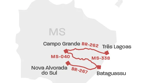 O trecho contempla extensões das rodovias estaduais MS-040, MS-338 e MS-395 e das federais BR-262 e BR-267. A empresa vencedora do certame será definida com base no maior desconto oferecido sobre a tarifa de pedágio.