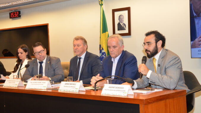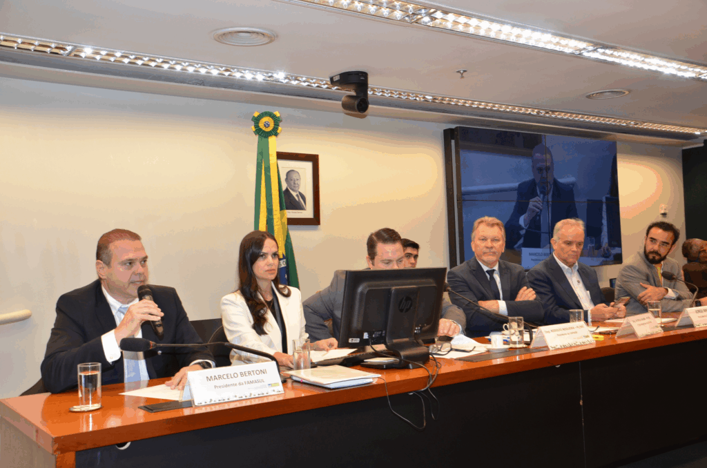 Nessa terça-feira, 1º, o presidente da Aprosoja/MS, Jorge Michelc, o vice-presidente, Andre Dobashi, os diretores Fábio Caminha e Paulo Stefanello, produtores rurais, parlamentares e representantes de instituições ligadas ao agronegócio, participaram de audiência pública, em Brasília.