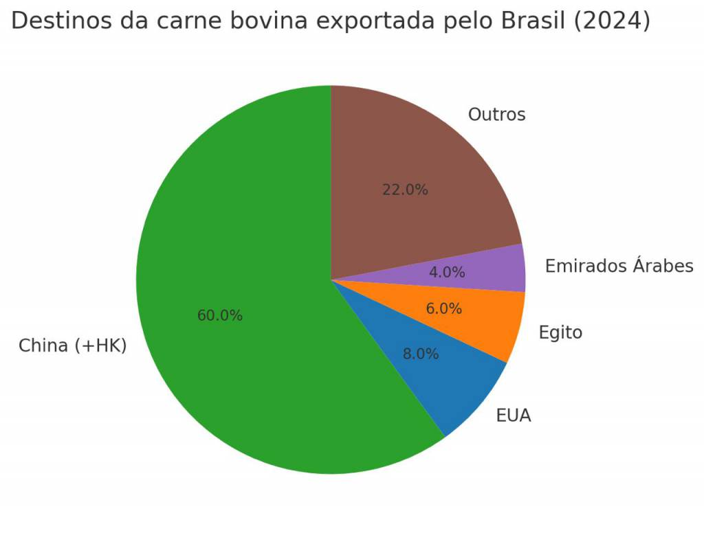 O mercado americano, segundo a Associação, absorve basicamente cortes desossados congelados, voltados à indústria de hambúrguer e processados, sem peso decisivo na precificação do boi gordo. Já a China permanece como o principal destino, com mais de 60% das exportações brasileiras.
