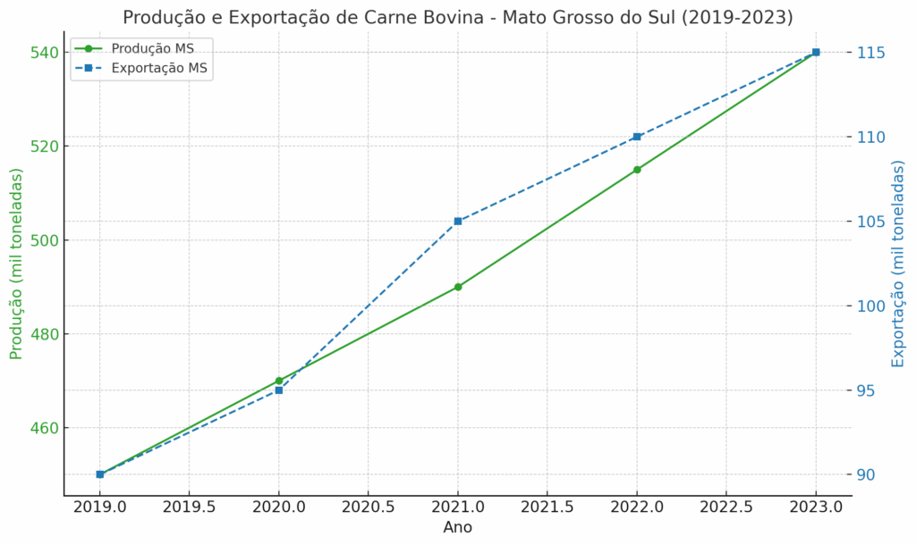 A produção do MS cresceu de cerca de 450 mil toneladas em 2019 para 540 mil toneladas em 2023.