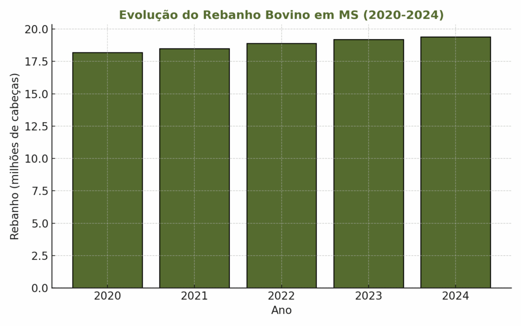 A força da pecuária sul-mato-grossense se apoia em um rebanho de 19,5 milhões de cabeças, o segundo maior do Brasil, com destaque para a genética Nelore, reconhecida mundialmente pela rusticidade e qualidade de carcaça. O estado responde por aproximadamente 13% das exportações nacionais de carne bovina, consolidando sua imagem como fornecedor confiável e sustentável.