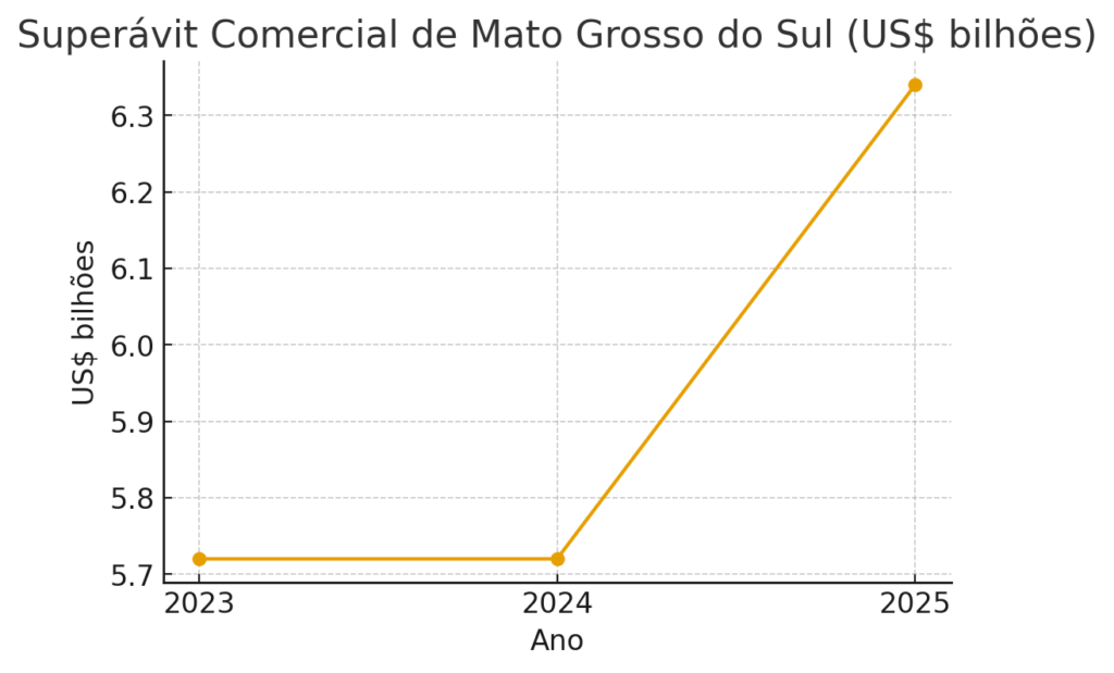 Mato Grosso do Sul segue consolidando sua posição como um dos maiores exportadores do agronegócio brasileiro. Entre janeiro e setembro de 2025, o Estado registrou US$ 8,18 bilhões em exportações e US$ 1,83 bilhão em importações, alcançando um superávit de US$ 6,34 bilhões, segundo a Carta de Conjuntura do Comércio Exterior elaborada pela Semadesc.