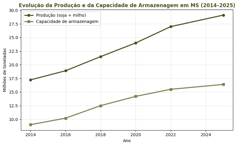 Segundo estudo técnico da Associação dos Produtores de Soja de Mato Grosso do Sul (Aprosoja/MS), o Estado possui déficit estrutural de 11,1 milhões de toneladas. A produção média de soja e milho ultrapassa 22,9 milhões de toneladas por safra, mas a capacidade instalada é de apenas 16,4 milhões, conforme dados da Companhia Nacional de Abastecimento (Conab) e do Sistema de Informação Geográfica do Agronegócio (SIGA/MS).