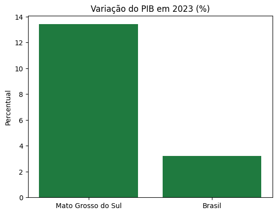 O crescimento econômico de Mato Grosso do Sul em 2023 confirma a força do agronegócio integrado à indústria e à logística. Dados do IBGE, compilados pela Assessoria de Economia da Semadesc, mostram que o PIB estadual atingiu R$ 184 bilhões, avanço de 13,4% em relação a 2022 — desempenho quatro vezes superior à média nacional (3,2%) e o segundo maior crescimento do país, atrás apenas do Acre.