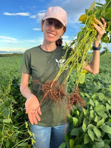 “Cursei Agronomia, que é meu sonho de menina. Quando eu tinha um dinheirinho na infância, ia comprar planta”, recorda. Hoje, ela é a responsável técnica por propriedades em Ponta Porã e Paranhos, gerenciando quatro culturas distintas: soja, milho, mandioca e sorgo.